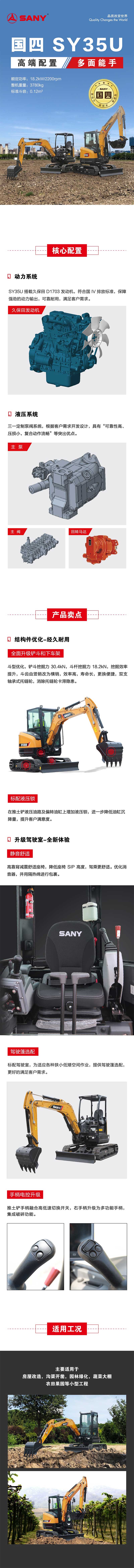 | 性能 | 爬坡能力:58% 回轉速度:10rpm 接地比壓:32-35kPa 鏟斗挖掘力:30.4kN 斗桿挖掘力:18.2kN 行走速度:4.2/2.4km/h |